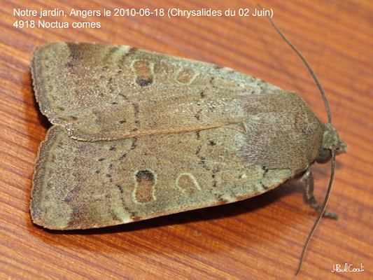 NOCTUIDAE, Noctuinae, Noctuini, Noctua comes (Hübner, 1813)_4918/448850 la Hulotte_Notre jardin, Angers le 2010-06-18 (Chrysalides du 02 Juin)_Ident : JPC