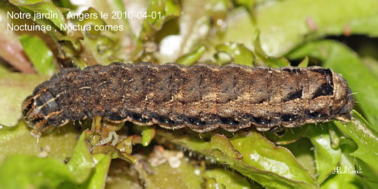 NOCTUIDAE, Noctuinae, Noctuini, Noctua comes (Hübner, 1813)_4918/448850 chenille de la Hulotte_Notre jardin, Angers le 2010-04-01_Ident : JPC