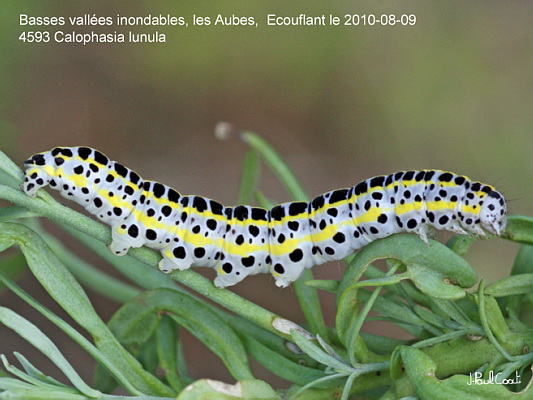 NOCTUIDAE, Oncocnemidinae, Calophasia lunula (Hufnagel, 1766)_4593/449231 chenille de la Linariette_Basses vallées inondables, les Aubes, Ecouflant le 2010-08-09_Ident : JPC