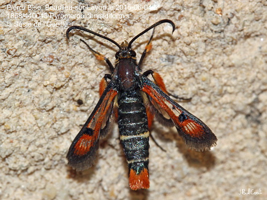 SESIIDAE, Sesiinae, Synanthedonini, Pyropteron chrysidiformis (Esper, 1782)_1858/440043 la Sésie de l'Oseille_Pierre Bise, Beaulieu-sur-Layon le 2015-06-04_Ident : JPC