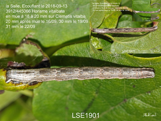 GEOMETRIDAE, Larentiinae, Melanthiini, Horisme vitalbata (D & S, 1775)_3912/445066 la Larentie de la clématite_la Salle, Ecouflant le 2018-09-13 (en mue à 18 à 20 mm sur Clematis vitalba, 20 mm après mue le 16/09, 30 mm le 19/09, 31 mm le 22/09)_Ident : JPC LSE1901