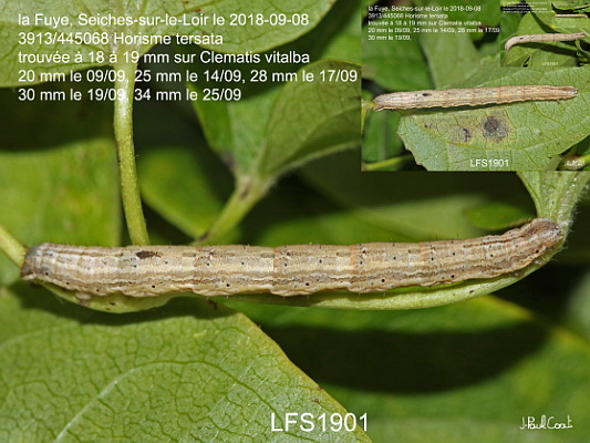 GEOMETRIDAE, Larentiinae, Melanthiini, Horisme tersata (D & S, 1775)_3913/445068 chenille de l'Horisme élégant, l'Essuyée_la Fuye, Seiches-sur-le-Loir le 2018-09-08 (trouvée à 18 à 19 mm sur Clematis vitalba, 20 mm le 09/09, 25 mm le 14/09, 28 mm le 17/09, 30 mm le 19/09, 34 mm le 25/09, sous terre le , imago le )_Ident : JPC LFS1901