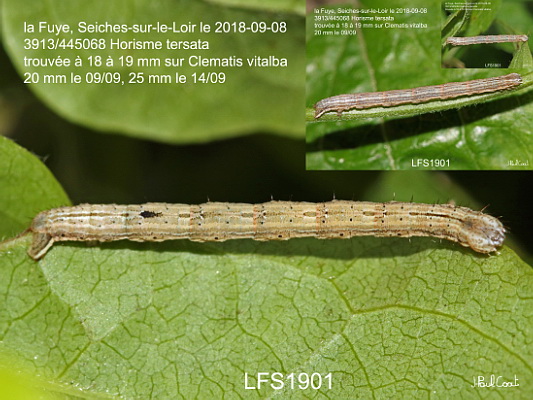 GEOMETRIDAE, Larentiinae, Melanthiini, Horisme tersata (D & S, 1775)_3913/445068 chenille de l'Horisme élégant, l'Essuyée_la Fuye, Seiches-sur-le-Loir le 2018-09-08 (trouvée à 18 à 19 mm sur Clematis vitalba, 20 mm le 09/09, 25 mm le 14/09)_Ident : JPC LFS1901