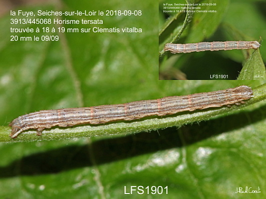 GEOMETRIDAE, Larentiinae, Melanthiini, Horisme tersata (D & S, 1775)_3913/445068 chenille de l'Horisme élégant, l'Essuyée_la Fuye, Seiches-sur-le-Loir le 2018-09-08 (trouvée à 18 à 19 mm sur Clematis vitalba, 20 mm le 09/09)_Ident : JPC LFS1901