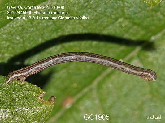 GEOMETRIDAE, Larentiinae, Melanthiini, Horisme radicaria (de La Harpe, 1855)_3915/445069 chenille de l'Horisme jumeau_Gevrise, Corzé le 2018-10-09 (13 à 14 mm sur Clematis vitalba)_Ident : JPC GC1905