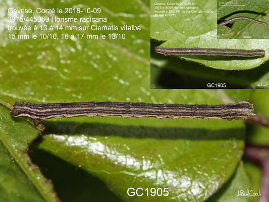 GEOMETRIDAE, Larentiinae, Melanthiini, Horisme radicaria (de La Harpe, 1855)_3915/445069 chenille de l'Horisme jumeau_Gevrise, Corzé le 2018-10-09 (13 à 14 mm sur Clematis vitalba, 15 mm le 10/10, 16 à 17 mm le 13/10)_Ident : JPC GC1905