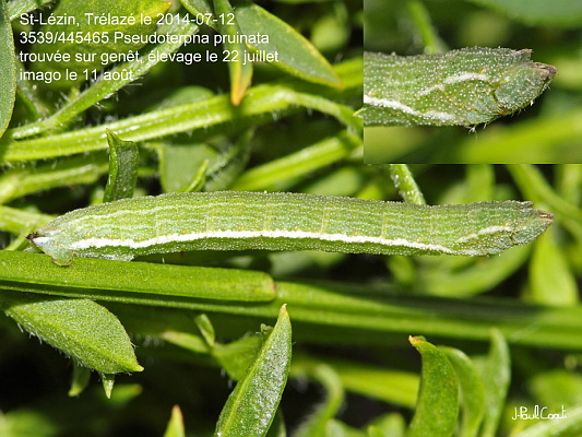 GEOMETRIDAE, Geometrinae, Pseudoterpnini, Pseudoterpna pruinata (Hufnagel, 1767)_3539/445465 chenille de l’Hémithée du genêt_St-Lézin, Trélazé le 2014-07-12 (élevage le 22 juillet)_Ident : JPC