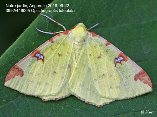 GEOMETRIDAE, Ennominae, Epionini, Opisthograptis luteolata (Linnaeus, 1758)_3992/446005 la Citronelle rouillée, la Phalène de l'alisier_Notre jardin, Angers le 2016-09-22_Ident : JPC
