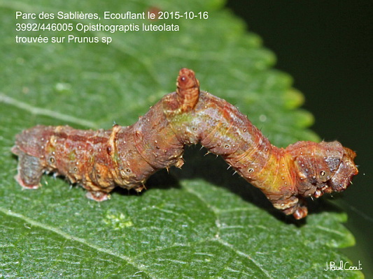 GEOMETRIDAE, Ennominae, Epionini, Opisthograptis luteolata (Linnaeus, 1758)_3992/446005 chenille de la Citronelle rouillée, la Phalène de l'alisier sur Prunus sp_Parc des Sablières, Ecouflant le 2015-10-16_Ident : JPC