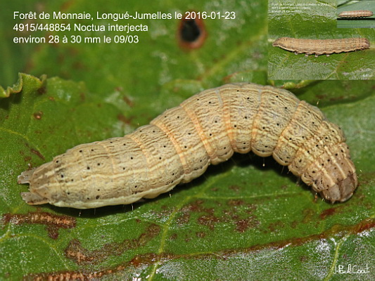 NOCTUIDAE, Noctuinae, Noctuini, Noctua interjecta (Hübner, 1803)_4915/448854 chenille du Faux Casque_Forêt de Monnaie, Longué-Jumelles le 2016-01-23 (environ 28 à 30 mm le 09/03)_Ident : JPC
