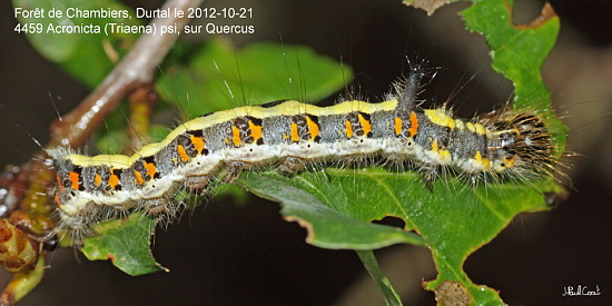 NOCTUIDAE, Acronictinae, Acronicta (Triaena) psi (Linnaeus, 1758)_4459/449420 chenille du Psi sur Quercus_Forêt de Chambiers, Durtal le 2012-10-21_Ident : JPC